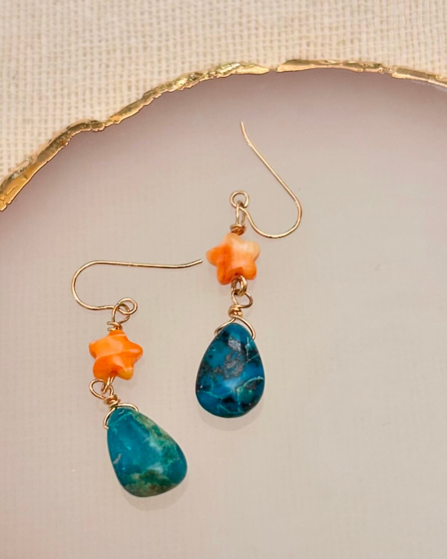 星型のオイスターシェルもクリソコラを合わせたピアスです。