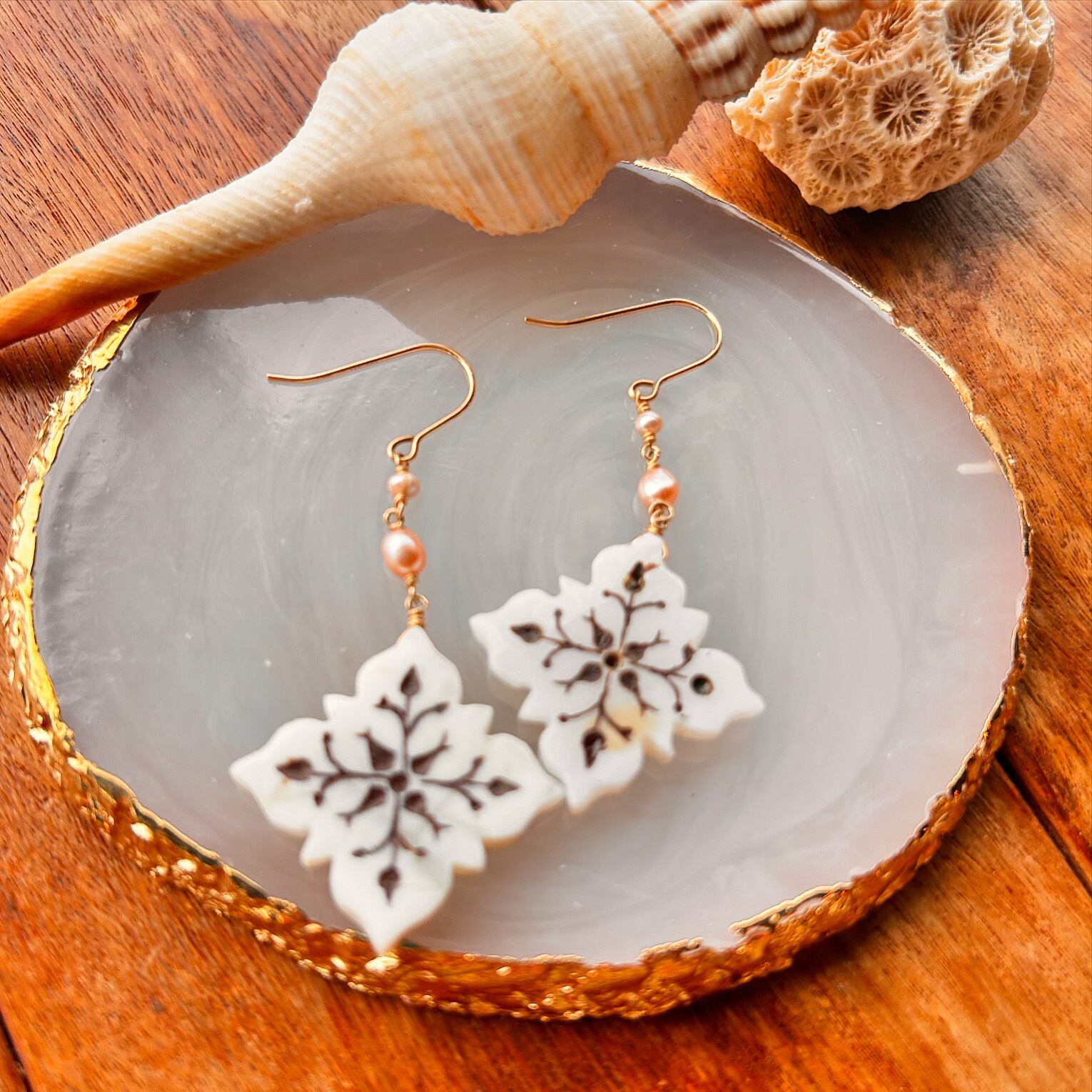 ハワイアンキルト柄のコモンオパールとパールを合わせました。