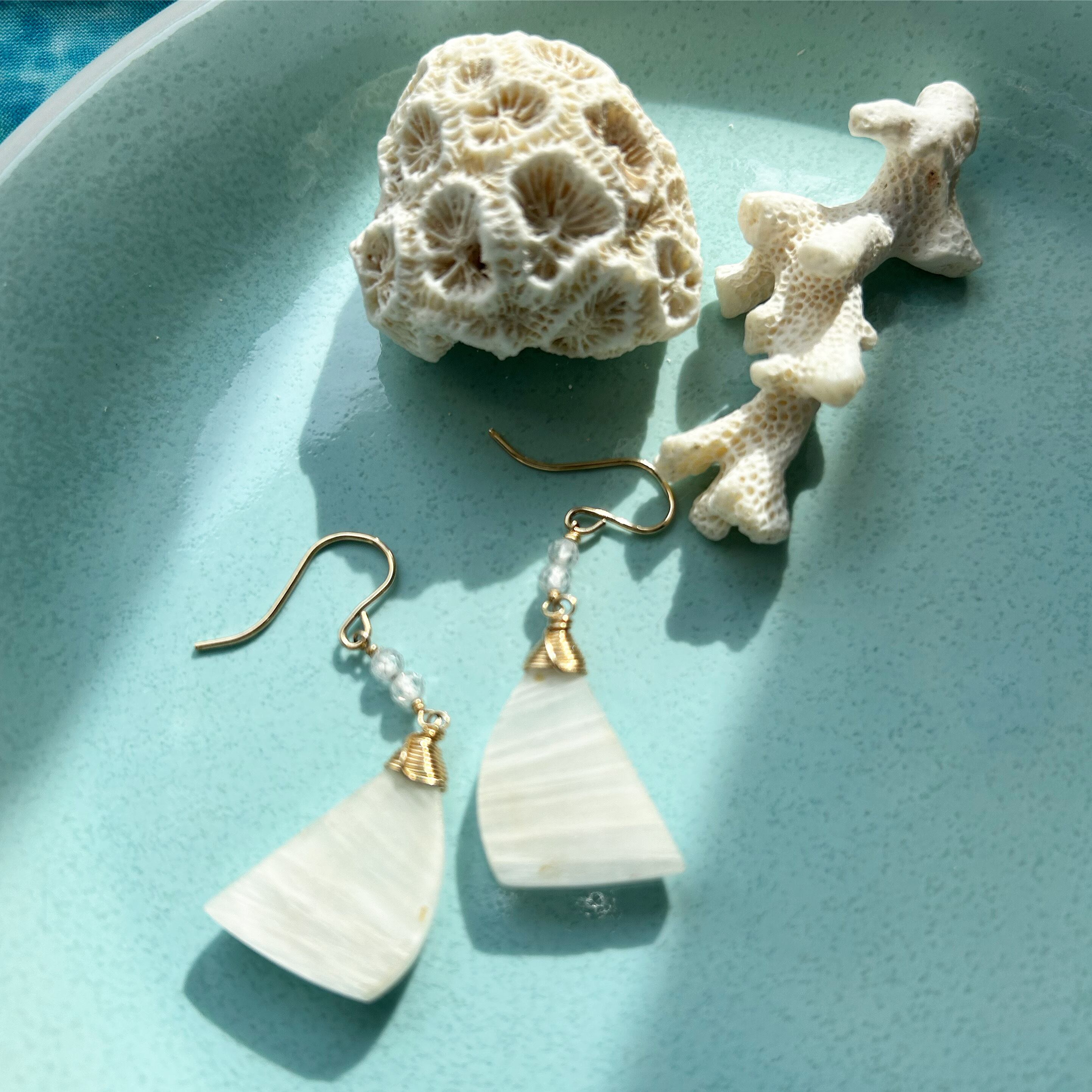 大きめの爽やかなホワイトスコレサイトとジルコンを合わせたピアスです。