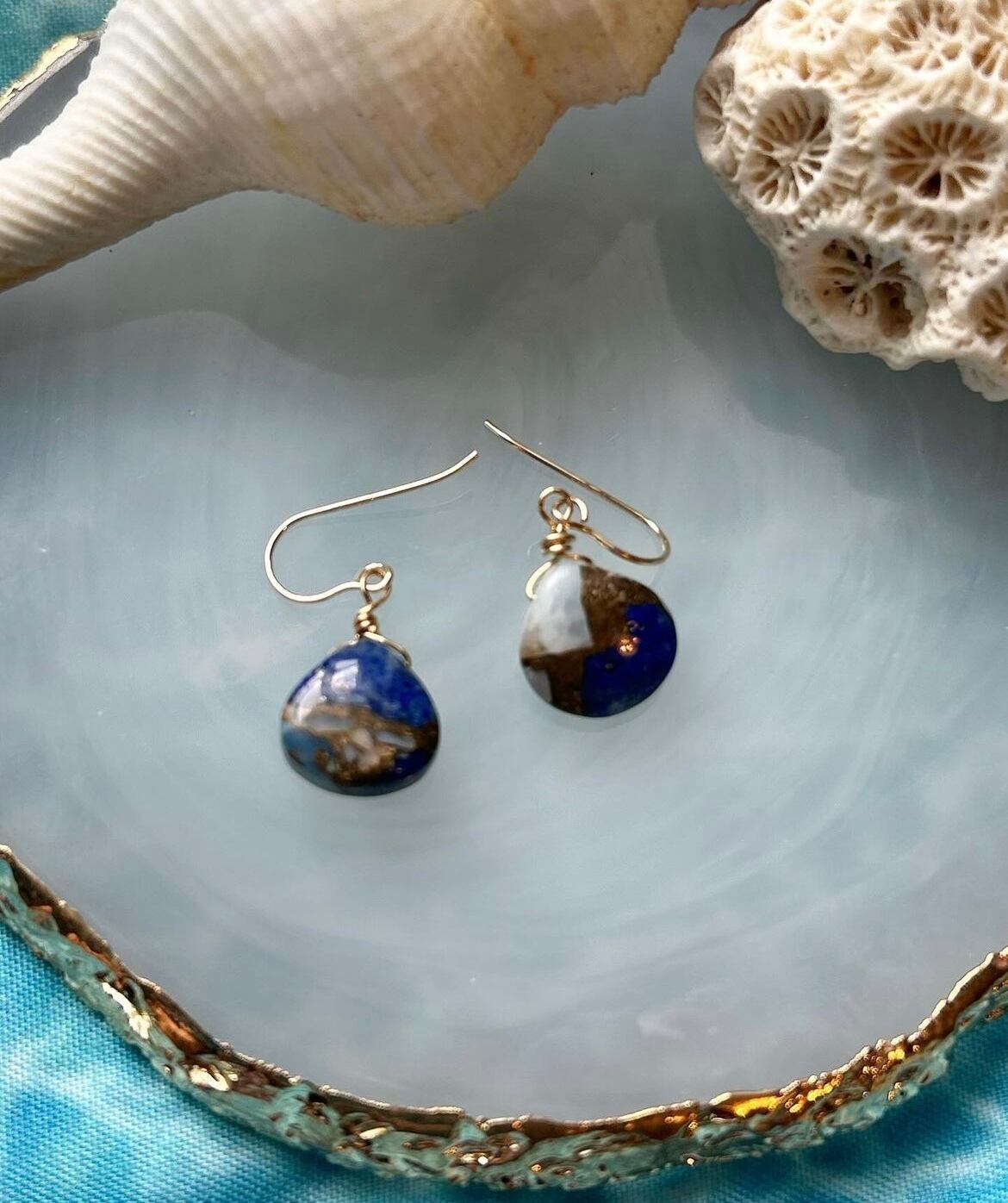 ブルーオパールラピスラズリコッパー マロン型 ピアス