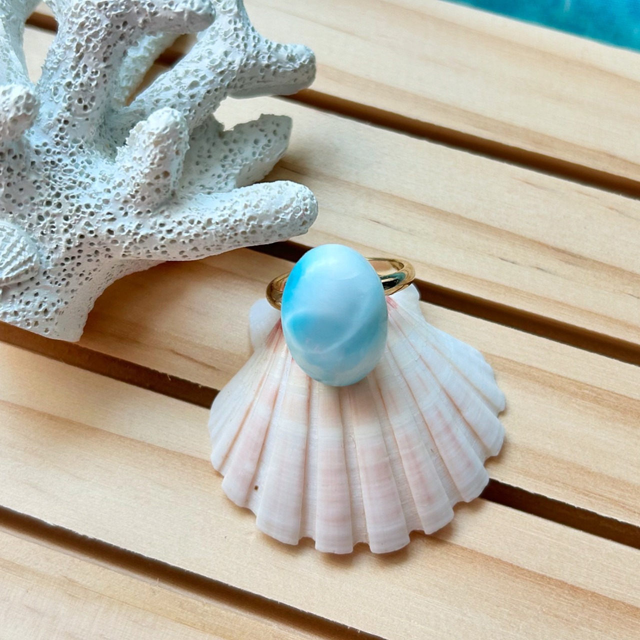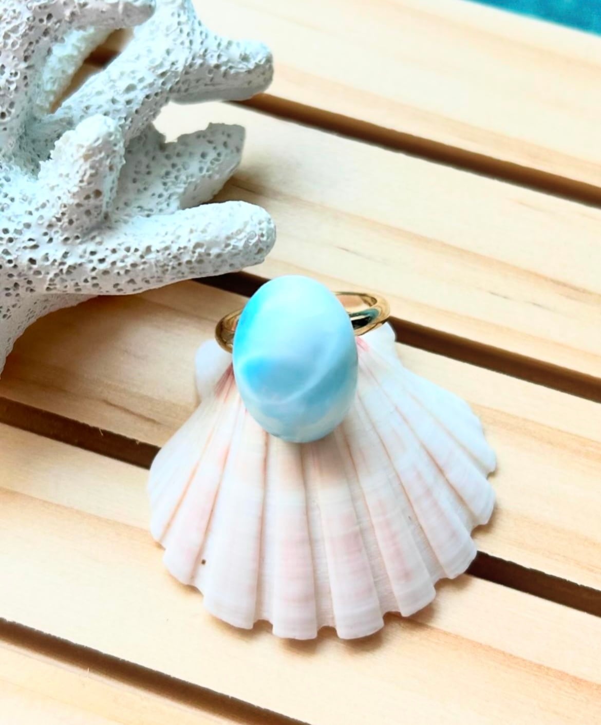 ラリマー, カリブの宝石, 天然石リング, ブルーストーン, ニッケルフリー, 真鍮リング, ハンドメイドジュエリー, 癒しの石, 平和の石, 愛の石, 自由の石, プレゼント, ギフト, レディースアクセサリー, おしゃれリング, ナチュラルストーン, パワーストーン
