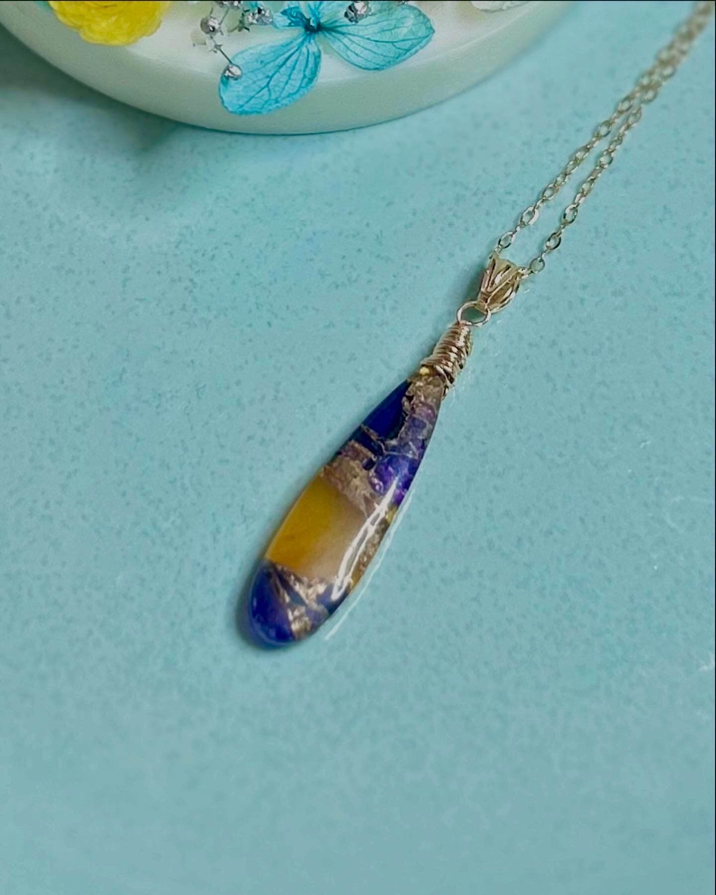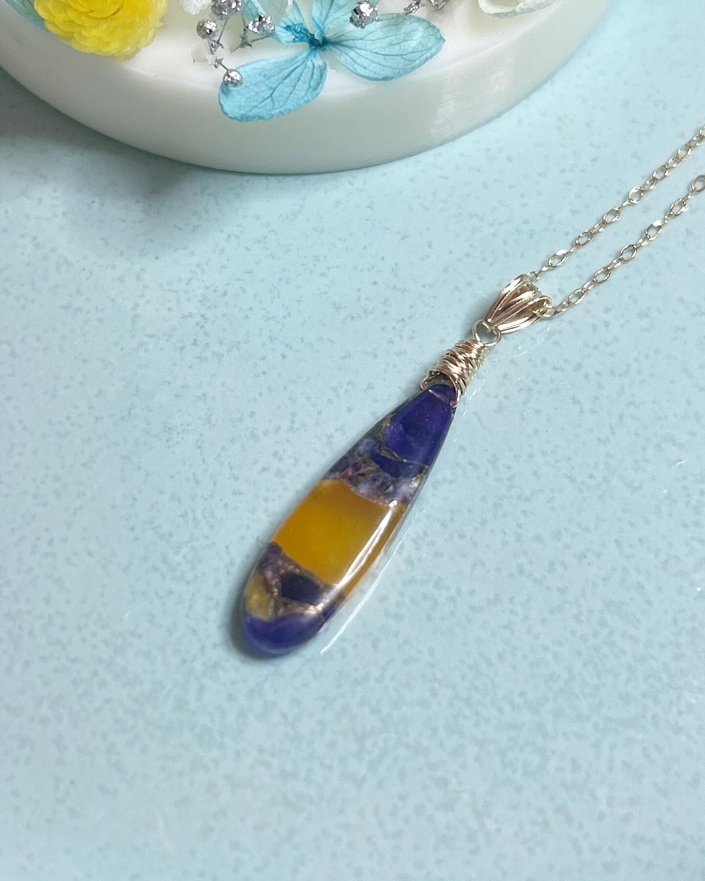 イエローパープルコッパー ロングペアシェイプ ペンダントヘッド