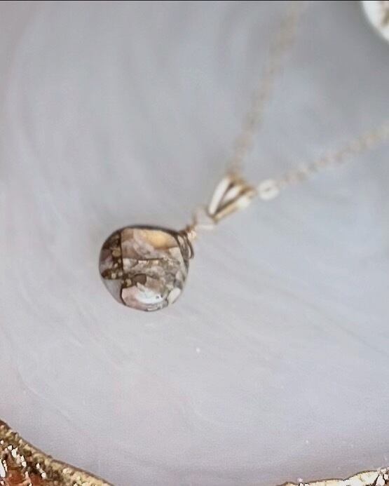 グァバクォーツをコッパーで圧着したコンポジットストーンです。
